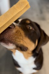 The cheese sticks were immediately sniffed, found to be delicious and placed in a safe basket to be chewed. And what can I say? They went down really well with our dog. A great alternative to meat. And they also remove tartar. Natural, without preservatives or chemical additives. What more could Mum want?
