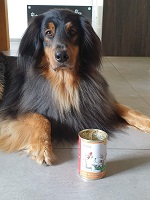 Our Hovawart waits patiently for his food and is happy to eat.